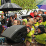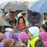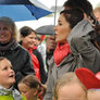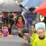Vagtskiftet ved Marselisborg Slot skærtorsdag kl. 12 tiltrak mange fremmødte, mens politiets indsatsleder undervejs tog sig tid til at besvare spørgsmål fra en nysgerrig dreng.