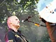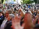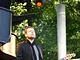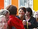Vagtskiftet ved Marselisborg Slot skærtorsdag kl. 12 tiltrak mange fremmødte, mens politiets indsatsleder undervejs tog sig tid til at besvare spørgsmål fra en nysgerrig dreng.