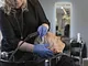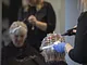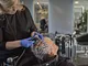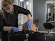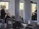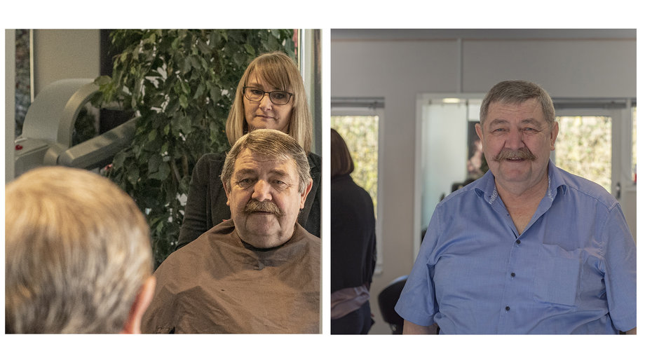 Frisørhuset var klar til at modtage langhårede kunder, der glæder sig til at blive klippet på den første åbningsdag efter corona nedlukningen. Sprit og handsker ved indgangen viser at alt ikke er helt som det plejer at være - altså før corona.