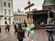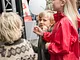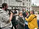 Vagtskiftet ved Marselisborg Slot skærtorsdag kl. 12 tiltrak mange fremmødte, mens politiets indsatsleder undervejs tog sig tid til at besvare spørgsmål fra en nysgerrig dreng.
