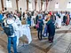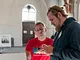 Vagtskiftet ved Marselisborg Slot skærtorsdag kl. 12 tiltrak mange fremmødte, mens politiets indsatsleder undervejs tog sig tid til at besvare spørgsmål fra en nysgerrig dreng.