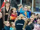 Vagtskiftet ved Marselisborg Slot skærtorsdag kl. 12 tiltrak mange fremmødte, mens politiets indsatsleder undervejs tog sig tid til at besvare spørgsmål fra en nysgerrig dreng.