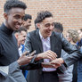 Vagtskiftet ved Marselisborg Slot skærtorsdag kl. 12 tiltrak mange fremmødte, mens politiets indsatsleder undervejs tog sig tid til at besvare spørgsmål fra en nysgerrig dreng.
