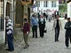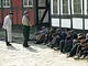 Vagtskiftet ved Marselisborg Slot skærtorsdag kl. 12 tiltrak mange fremmødte, mens politiets indsatsleder undervejs tog sig tid til at besvare spørgsmål fra en nysgerrig dreng.