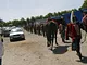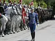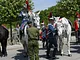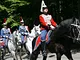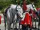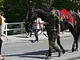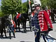 Vagtskiftet ved Marselisborg Slot skærtorsdag kl. 12 tiltrak mange fremmødte, mens politiets indsatsleder undervejs tog sig tid til at besvare spørgsmål fra en nysgerrig dreng.