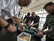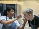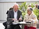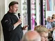 Vagtskiftet ved Marselisborg Slot skærtorsdag kl. 12 tiltrak mange fremmødte, mens politiets indsatsleder undervejs tog sig tid til at besvare spørgsmål fra en nysgerrig dreng.