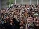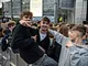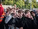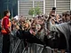 Vagtskiftet ved Marselisborg Slot skærtorsdag kl. 12 tiltrak mange fremmødte, mens politiets indsatsleder undervejs tog sig tid til at besvare spørgsmål fra en nysgerrig dreng.