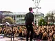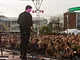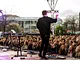 Vagtskiftet ved Marselisborg Slot skærtorsdag kl. 12 tiltrak mange fremmødte, mens politiets indsatsleder undervejs tog sig tid til at besvare spørgsmål fra en nysgerrig dreng.