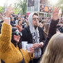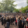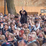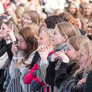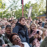 Vagtskiftet ved Marselisborg Slot skærtorsdag kl. 12 tiltrak mange fremmødte, mens politiets indsatsleder undervejs tog sig tid til at besvare spørgsmål fra en nysgerrig dreng.