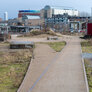 Det gamle godsbaneområde er i hastig forvandling til boligområde, men man kan fortsat se elementer fra en svunden tid.