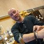 Vagtskiftet ved Marselisborg Slot skærtorsdag kl. 12 tiltrak mange fremmødte, mens politiets indsatsleder undervejs tog sig tid til at besvare spørgsmål fra en nysgerrig dreng.