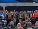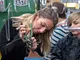 Vagtskiftet ved Marselisborg Slot skærtorsdag kl. 12 tiltrak mange fremmødte, mens politiets indsatsleder undervejs tog sig tid til at besvare spørgsmål fra en nysgerrig dreng.