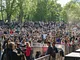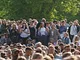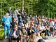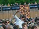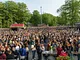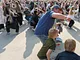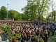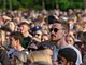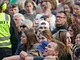 Vagtskiftet ved Marselisborg Slot skærtorsdag kl. 12 tiltrak mange fremmødte, mens politiets indsatsleder undervejs tog sig tid til at besvare spørgsmål fra en nysgerrig dreng.