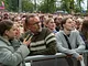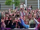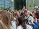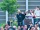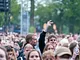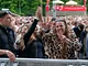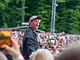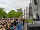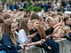 Vagtskiftet ved Marselisborg Slot skærtorsdag kl. 12 tiltrak mange fremmødte, mens politiets indsatsleder undervejs tog sig tid til at besvare spørgsmål fra en nysgerrig dreng.