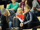 Vagtskiftet ved Marselisborg Slot skærtorsdag kl. 12 tiltrak mange fremmødte, mens politiets indsatsleder undervejs tog sig tid til at besvare spørgsmål fra en nysgerrig dreng.