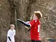 Vagtskiftet ved Marselisborg Slot skærtorsdag kl. 12 tiltrak mange fremmødte, mens politiets indsatsleder undervejs tog sig tid til at besvare spørgsmål fra en nysgerrig dreng.