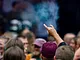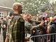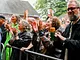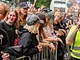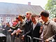 Vagtskiftet ved Marselisborg Slot skærtorsdag kl. 12 tiltrak mange fremmødte, mens politiets indsatsleder undervejs tog sig tid til at besvare spørgsmål fra en nysgerrig dreng.
