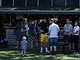 Vagtskiftet ved Marselisborg Slot skærtorsdag kl. 12 tiltrak mange fremmødte, mens politiets indsatsleder undervejs tog sig tid til at besvare spørgsmål fra en nysgerrig dreng.