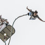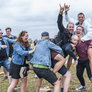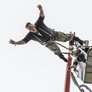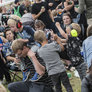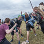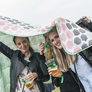 Nogle gæster så frygten i øjnene og tog det store spring i elastik. Og da regnen kom, ja hvad så... stole og tæpper røg over hovederne og festen fortsatte ufortrødent for fuld fart.