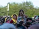 Vagtskiftet ved Marselisborg Slot skærtorsdag kl. 12 tiltrak mange fremmødte, mens politiets indsatsleder undervejs tog sig tid til at besvare spørgsmål fra en nysgerrig dreng.