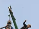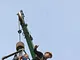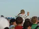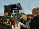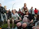 Vagtskiftet ved Marselisborg Slot skærtorsdag kl. 12 tiltrak mange fremmødte, mens politiets indsatsleder undervejs tog sig tid til at besvare spørgsmål fra en nysgerrig dreng.
