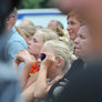 Vagtskiftet ved Marselisborg Slot skærtorsdag kl. 12 tiltrak mange fremmødte, mens politiets indsatsleder undervejs tog sig tid til at besvare spørgsmål fra en nysgerrig dreng.