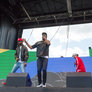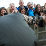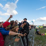 Vagtskiftet ved Marselisborg Slot skærtorsdag kl. 12 tiltrak mange fremmødte, mens politiets indsatsleder undervejs tog sig tid til at besvare spørgsmål fra en nysgerrig dreng.