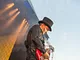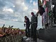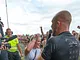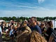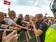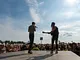 Vagtskiftet ved Marselisborg Slot skærtorsdag kl. 12 tiltrak mange fremmødte, mens politiets indsatsleder undervejs tog sig tid til at besvare spørgsmål fra en nysgerrig dreng.