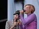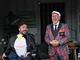 Vagtskiftet ved Marselisborg Slot skærtorsdag kl. 12 tiltrak mange fremmødte, mens politiets indsatsleder undervejs tog sig tid til at besvare spørgsmål fra en nysgerrig dreng.