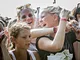 Vagtskiftet ved Marselisborg Slot skærtorsdag kl. 12 tiltrak mange fremmødte, mens politiets indsatsleder undervejs tog sig tid til at besvare spørgsmål fra en nysgerrig dreng.