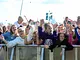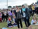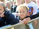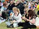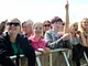 Vagtskiftet ved Marselisborg Slot skærtorsdag kl. 12 tiltrak mange fremmødte, mens politiets indsatsleder undervejs tog sig tid til at besvare spørgsmål fra en nysgerrig dreng.