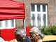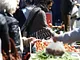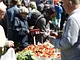Verdensbilled åbning i midtbyen kunne ikke mærkes på handlen på grønttorvet. Der var masser af mennesker der nød stemning, handel og en god snak med sælgerne eller bekendte.