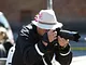 Vagtskiftet ved Marselisborg Slot skærtorsdag kl. 12 tiltrak mange fremmødte, mens politiets indsatsleder undervejs tog sig tid til at besvare spørgsmål fra en nysgerrig dreng.