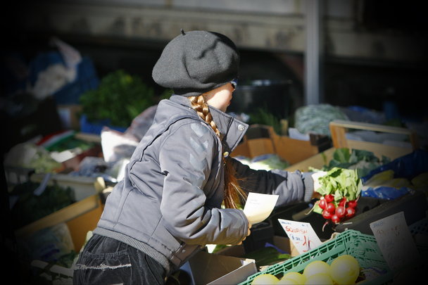 På trods af den stride og kolde forårsblæst trivedes påskesalg og kærligheden fint på grønttorvet, - endda ledsaget af harmonikamusik.