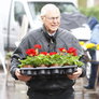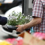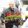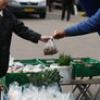 Den naturlige vanding fra oven satte sin begrænsning på dagens torvehandel. Udplantningsplanterne venter på lunere vejr, så de kan holde flyttedag; men hyggeligt trods det "strålende" vejr.