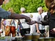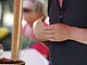 Vagtskiftet ved Marselisborg Slot skærtorsdag kl. 12 tiltrak mange fremmødte, mens politiets indsatsleder undervejs tog sig tid til at besvare spørgsmål fra en nysgerrig dreng.