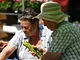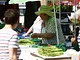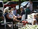 Så kom sommeren også til Grønttorvet. De friske grønne asparges, nye danske kartofler og danske jordbær sammen med alle blomsterne lokkede mange kunder til dagens handel på grønttorvet - ja, der var ligefrem kø ved salgsboderne. Sydlandsk stemning, hyggeligt på en varm lørdag!