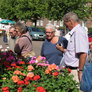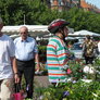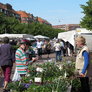 Fin handel på Grønttorvet i Århus. Vejret meget sommerligt, hvilket også kunne ses på antallet af handlende.