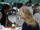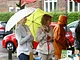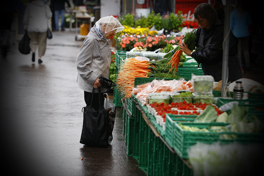 Et sommerligt regnvådt grønttorv med få kunder gjorde en lille handel. Som en stadepladsholder sagde "ikke engang kloarkerne kan følge med"!