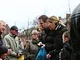 Vagtskiftet ved Marselisborg Slot skærtorsdag kl. 12 tiltrak mange fremmødte, mens politiets indsatsleder undervejs tog sig tid til at besvare spørgsmål fra en nysgerrig dreng.