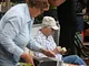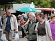 Vagtskiftet ved Marselisborg Slot skærtorsdag kl. 12 tiltrak mange fremmødte, mens politiets indsatsleder undervejs tog sig tid til at besvare spørgsmål fra en nysgerrig dreng.