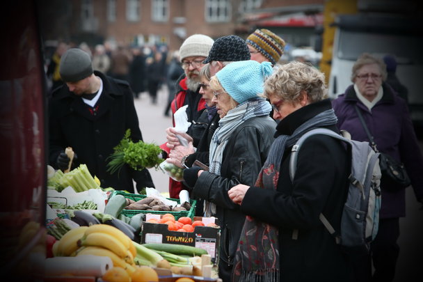 Selvom der var en del tomme stadepladser på torvet, var der mange mennesker der nød det forårsagtige vintervejr. Vintergrønt, grønkål og rosenkål var i dag i fokus.