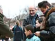 Vagtskiftet ved Marselisborg Slot skærtorsdag kl. 12 tiltrak mange fremmødte, mens politiets indsatsleder undervejs tog sig tid til at besvare spørgsmål fra en nysgerrig dreng.