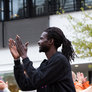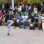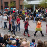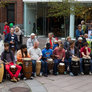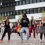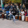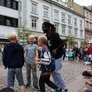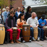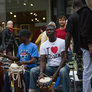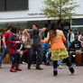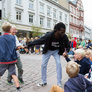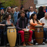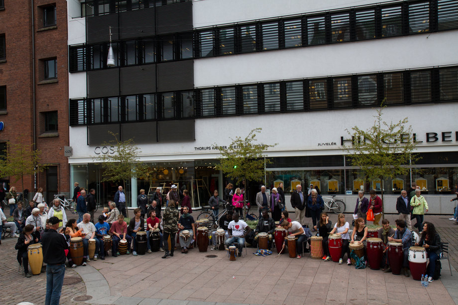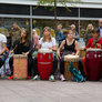 Groovy Gambia og studerende fra Det Jyske Musikkonservatorium i Aarhus gav Trommekoncert på Store Torv, ved siden af Little Big Thing.