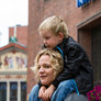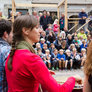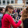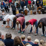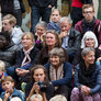 Vagtskiftet ved Marselisborg Slot skærtorsdag kl. 12 tiltrak mange fremmødte, mens politiets indsatsleder undervejs tog sig tid til at besvare spørgsmål fra en nysgerrig dreng.