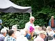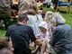 Vagtskiftet ved Marselisborg Slot skærtorsdag kl. 12 tiltrak mange fremmødte, mens politiets indsatsleder undervejs tog sig tid til at besvare spørgsmål fra en nysgerrig dreng.