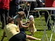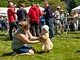 Vagtskiftet ved Marselisborg Slot skærtorsdag kl. 12 tiltrak mange fremmødte, mens politiets indsatsleder undervejs tog sig tid til at besvare spørgsmål fra en nysgerrig dreng.