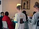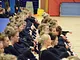 Vagtskiftet ved Marselisborg Slot skærtorsdag kl. 12 tiltrak mange fremmødte, mens politiets indsatsleder undervejs tog sig tid til at besvare spørgsmål fra en nysgerrig dreng.