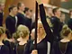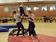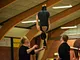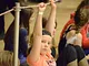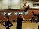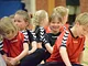 Ørting Hallen lagde lokaler til, da de dygtige gymnaster fra de lokale gymnastikforeninger gav opvisning, mens sneen væltede ned udenfor.