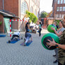 Vagtskiftet ved Marselisborg Slot skærtorsdag kl. 12 tiltrak mange fremmødte, mens politiets indsatsleder undervejs tog sig tid til at besvare spørgsmål fra en nysgerrig dreng.